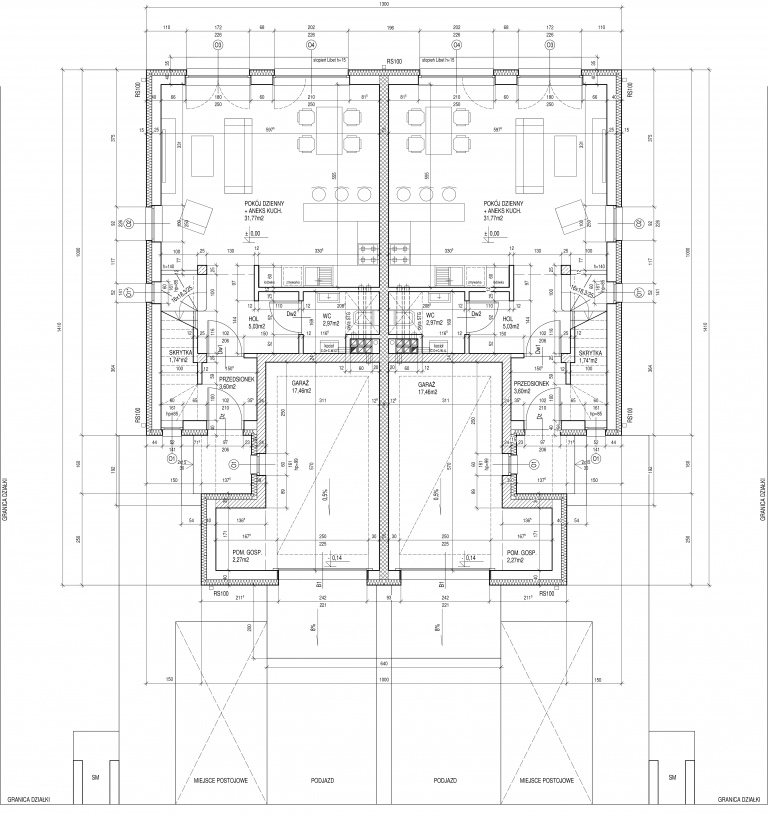 - Izolacja ścian zewnętrznych: ściany tynkowane tynkiem silikonowym firmy Caparol, płyty ze styropianu gr. 15-20 cm Grafit