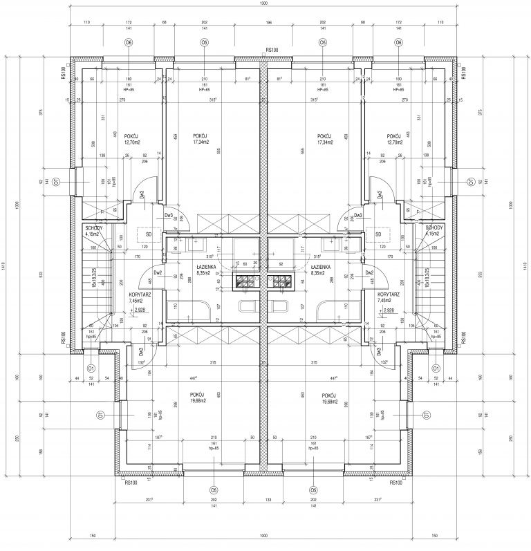 - podejścia do punktów, wyprowadzone w ściankach dla podłączenia armatury